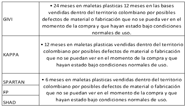 La garantía cubre defectos de fabricación en costuras, cierres y filtraciones.